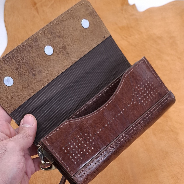 کیف چرم طبیعی موبایل ساخته شده از چرم طبیعی گاوی دارای 2 محفظه مخصوص موبایل و درب کیف به صورت مگنتی بوده که موقع بستن درب آسیبی به گوشی ایجاد نخواد کرد . و از یراق آلات درجه یک استفاده شده است .