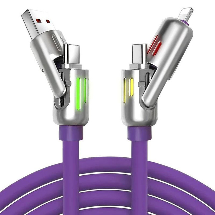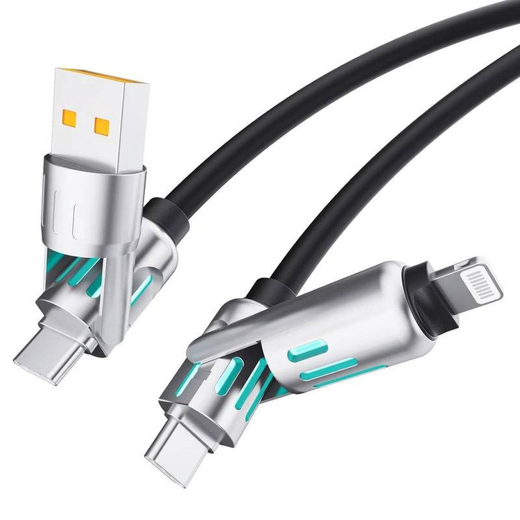 این کابل یکی از قدرتمندترین و مقاومترین کابلهای موجود در بازار است. کابل یک متری با سریهای ساختهشده از آلومینیوم، مجهز به چراغ LED در دو سر کابل، و ساختهشده از ۱۴۰ رشته سیم مسی با روکش فوقالعاده محکم میباشد. وجود IC کنترلر اصلی باعث میشود هنگام شارژ محصولات اپل و سامسونگ هیچ خطا یا اروری در نسخههای مختلف سیستمعامل iOS و اندروید ایجاد نشود. همچنین IC محافظ داخلی از دستگاه در برابر نوسانات برق محافظت کرده و سرعت انتقال داده را به شکل چشمگیری افزایش میدهد. طول عمر این کابل تا ۲۰٬۰۰۰ بار شارژ تست شده و دوام بالایی دارد. با داشتن ۴ کانکتور شامل USB، Type-C و Lightning، میتوان انواع گوشی و تبلت با این پورتها را بهراحتی شارژ کرد. از نظر سرعت شارژ، انتقال دیتا و مقاومت بدنه، کیفیت این کابل بسیار بالاتر از کابلهای معمولی داخل جعبه موبایل است و انتخابی مناسب برای افرادی محسوب میشود که چند دستگاه با پورتهای مختلف دارند.