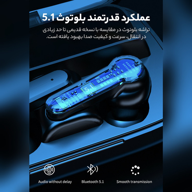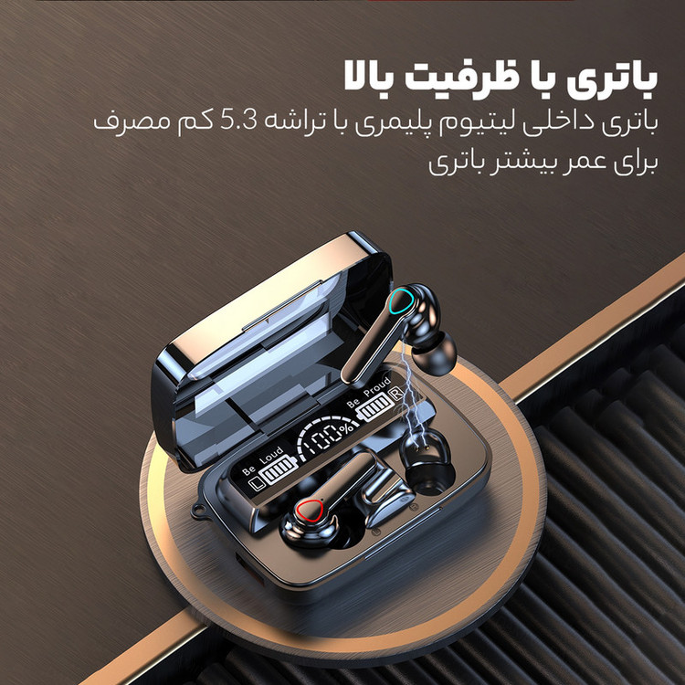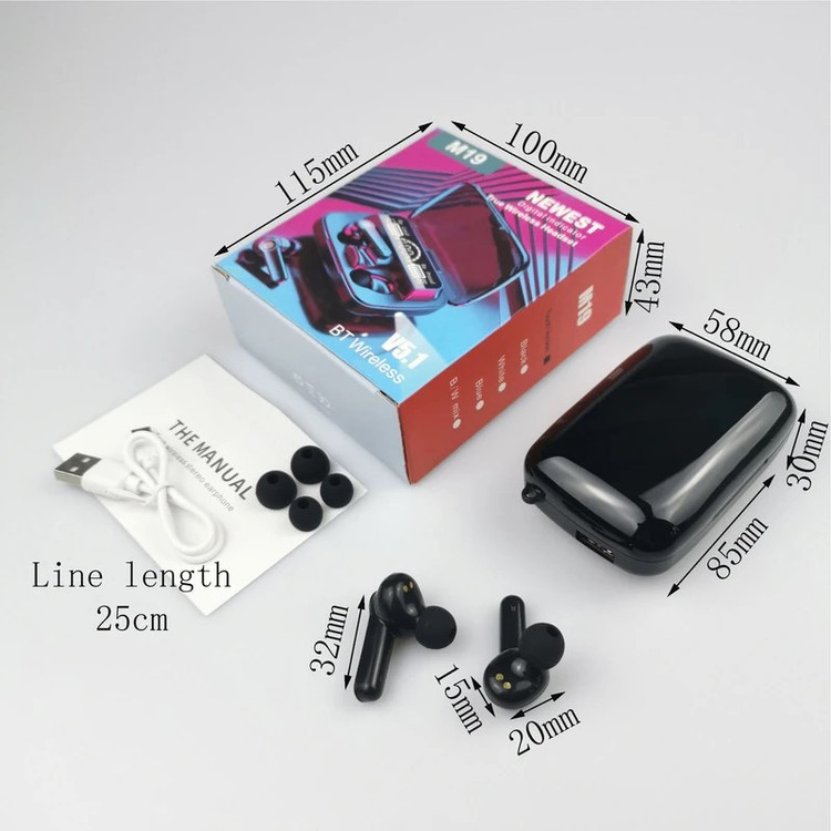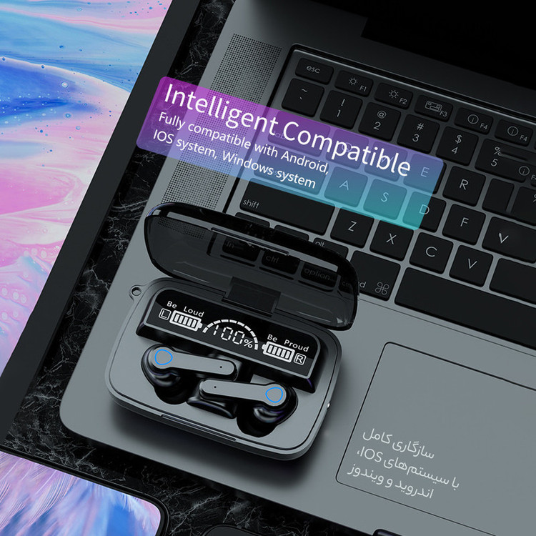 هندزفری بلوتوثی M͏I9.BTH یک نسخه بروز از خانواده هندزفریهای سری M است. از بلوتوث نسخه 5.1 با اتصال سریع و پایدار تا برد 12 متر پشتیبانی می کند و با طراحی ارگونومیک خود حدود 900 ساعت در حالت استندبای ماندگاری شارژ دارد. با استفاده از کنترل لمسی تعبیه شده بر روی ایربادها می توانید عملگرهای موسیقی را کنترل کنید و به تماس های دریافتی بدون نیاز به استفاده از تلفن همراه تان پاسخ دهید یا تماس را قطع کنید. این هندزفری دارای دو درگاه ورودی (برای شارژ دستگاه از نوع Type-c) و درگاه دوم خروجی می باشد و می توانید از آن برای شارژ کردن تلفن همراه خود استفاده کنید. ظرفیت محفظه شارژ این هندزفری برابر با 2000 میلی آمپر ساعت است که میتوانید از این ظرفیت بالا برای شارژ گوشی موبایل نیز استفاده کنید. همچنین ظرفیت هر کدام از گوشی ها برابر با 50 میلی آمپر ساعت است. این هندزفری دارای کیفیت صدای HD بوده و بسیار عالی و رسا، با بیس بسیار قوی می باشد. هندزفری بی سیم M͏I9.BTH همچنین دارای HiFi STEREO می باشد و به همین جهت پخش صدای واضح و شفافی را به شما ارائه می دهد. این محصول برخلاف اکثر ایربادها بصورت کامل در گوشتان قرار میگیرد. این هندزفری دارای محفظه با ابعاد استانداردی است و به آسانی در جیب و کیفتان جای میگیرد. گوشی های هندزفری بی سیم M͏I9.BTH پس از خارج شدن از محفظه شارژ بطور خودکار روشن شده و با هم جفت می شوند و بصورت اتومات به دستگاهی که قبلا به آن متصل بوده(گوشی موبایل، کامپیوتر، لپ تاپ و...) متصل می شوند. دکمه های لمسی هوشمند و حساس تعبیه شده روی گوشی ها شما را در کنترل عملگرهایی مانند توقف/اجرای موسیقی، پاسخ/رد تماس ها، کاهش/افزایش صدا و فعال کردن دستیار صوتی هوشمند یاری می کنند. این هندزفری با سیستم های اندروید، IOS و ویندوز سازگاری کامل دارد. قاب آینه ای شکل M͏I9.BTH بعنوان آینه آرایش همیشه همراهتان خواهد بود. همچنین یک چراغ قوه به همراه دکمه آن روی بدنه آن مناسب برای مکان های تاریک تعبیه شده است.