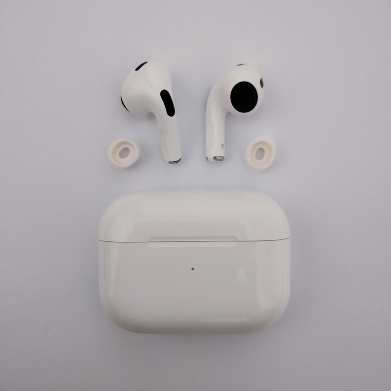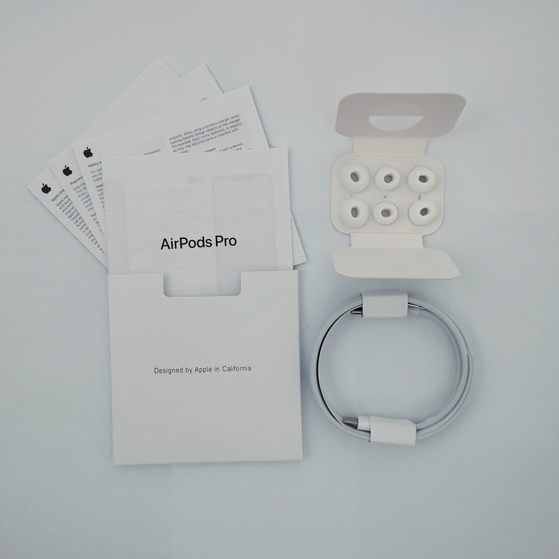 کیس شارژ (پاوربانک) با قابلیت شارژ بی سیم / چهار نوع گوشی سیلیکونی ضد حساسیت (سایز: بسیار کوچک (XS)، کوچک (S)، متوسط (M)، بزرگ (L)) / کابل USB Type-C / دفترچه راهنما