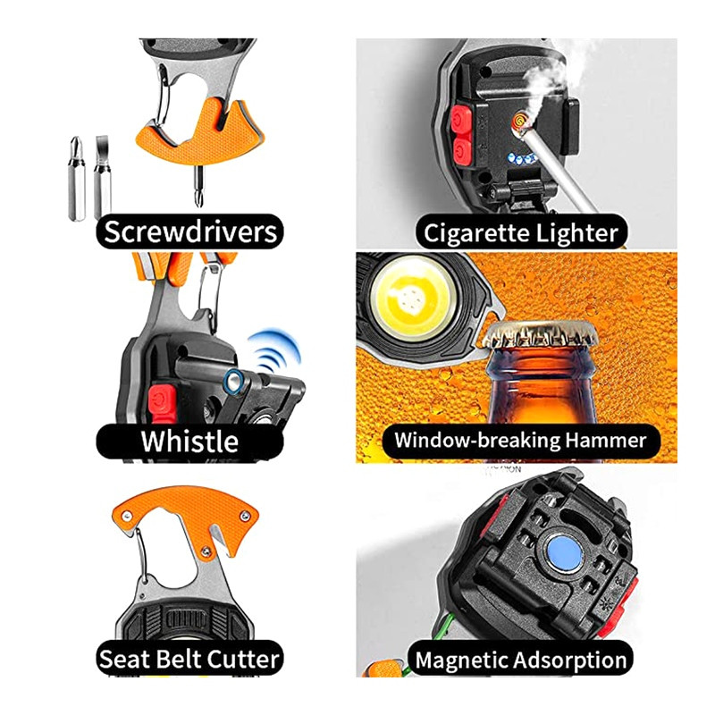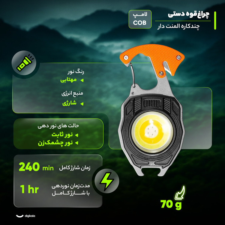 چراغ قوه لنزدار 6 کاره + فندک المنتی ( پیچ گوشتی + جاکلیدی + کاتر + سوت و آهن ربا ) VULCAN